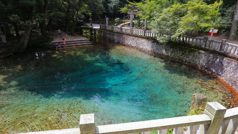 透き通ったブルーの水が不思議なほどの美しさを見せる湧き水「別府弁天池」。